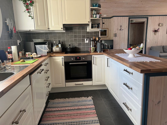 Köket är väl utrustat med spis, mikro, vattenkokare och en diskmaskin. I badrum finns en toa och dusch. Dessutom finns en bastu med en fin utsikt över älven.