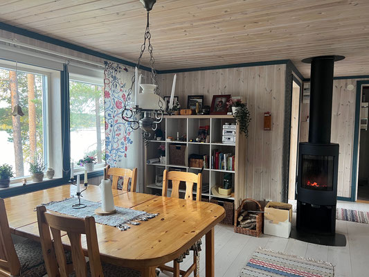 I vardagsrum finns en vedkamin för en mysig värme under den kallare årstid. Wifi finns på plats.